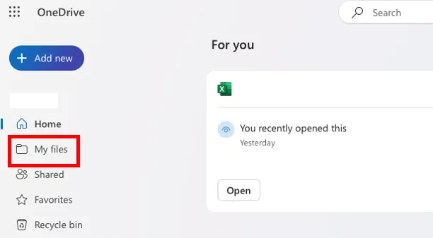 On the top page of OneDrive (the “Home” page), some of the files stored in OneDrive are displayed regardless of the folders they belong to and do not reflect the hierarchical structure of the folders. Therefore, to navigate to the desired file via folders, you need to follow the steps below.