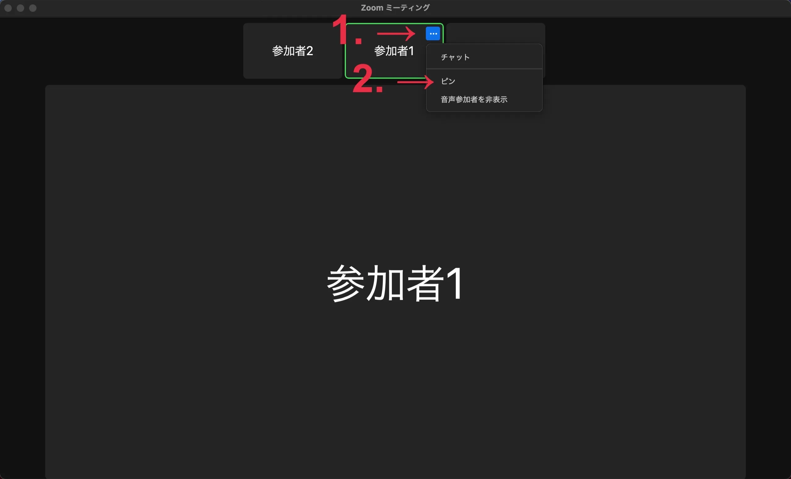 特定の参加者を大きく表示する(ピン留め)